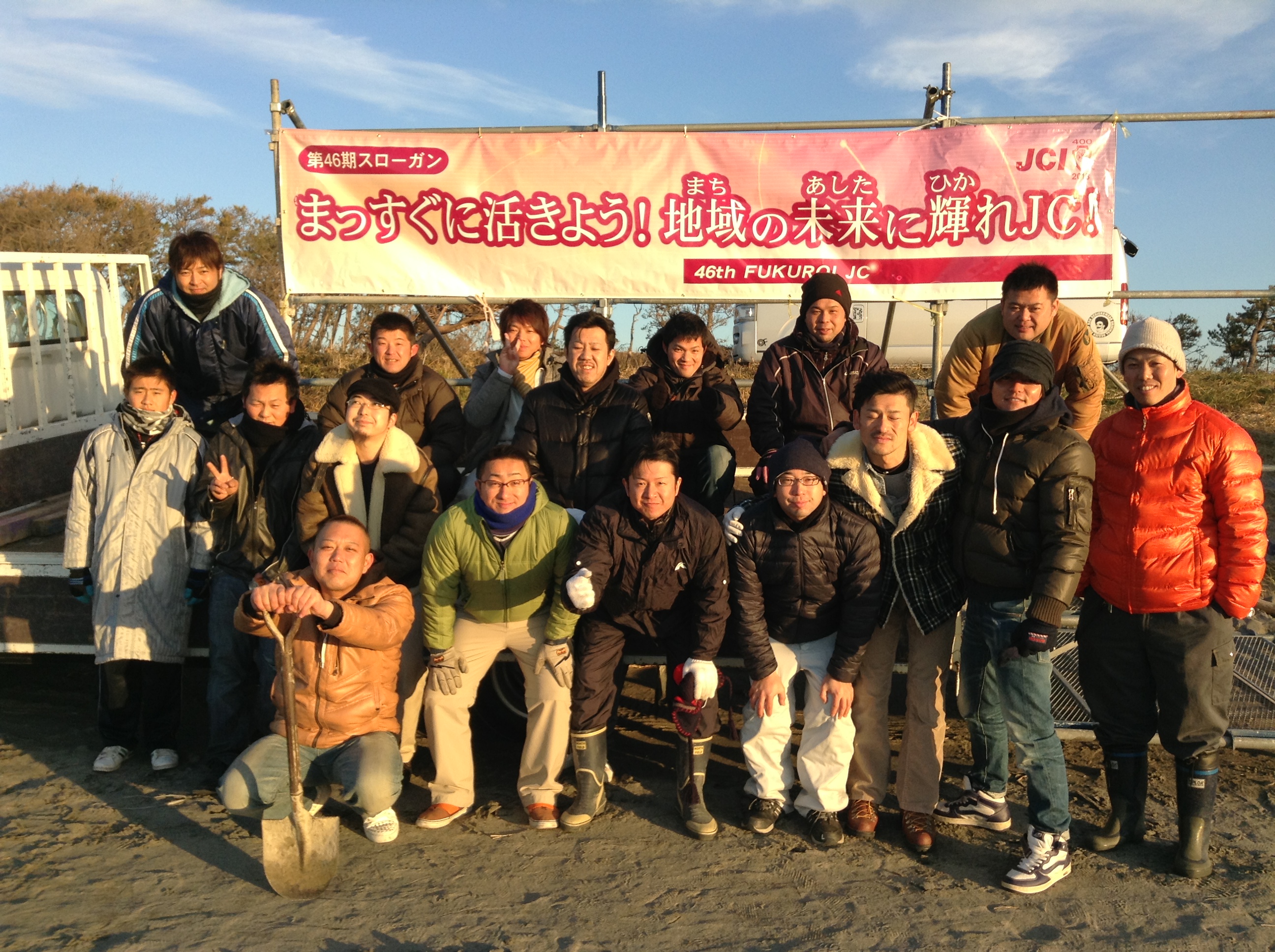 最後は第46期の横断幕の前で全員記念撮影。