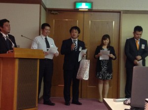 報告会では、出向者に前に出てもらい、パワーポイントを使用して、出向により得た経験から、感じ取ったことをメンバーの皆と共有するための報告をしてもらいました。