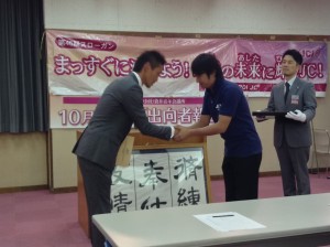 袋井青年会議所のスポンサーJCである浜松青年会議所へ、感謝状並びに記念品の贈呈。