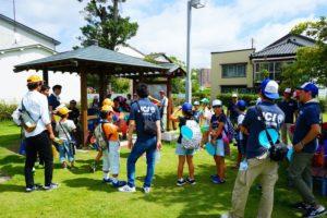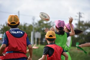 その後、東海道を通り親水公園へ。そこでタグラグビーを行いました。