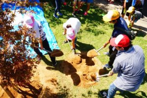 その後テントを片付けて、愛の公園へ出発!記念植樹を行い、夢をフラッグに皆で書いて閉校式を行いました。