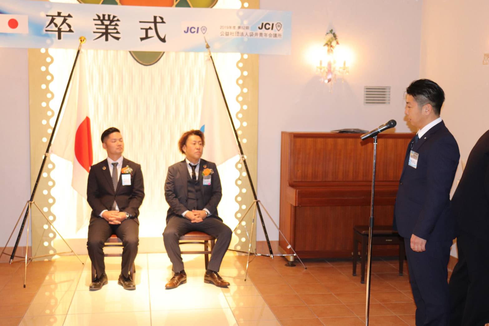 袋井青年会議所のメンバーとして様々な活動をしてきたお二人が卒業という区切りを迎え、新たに力強く前に進んでいただくためにこの卒業式を行いました。