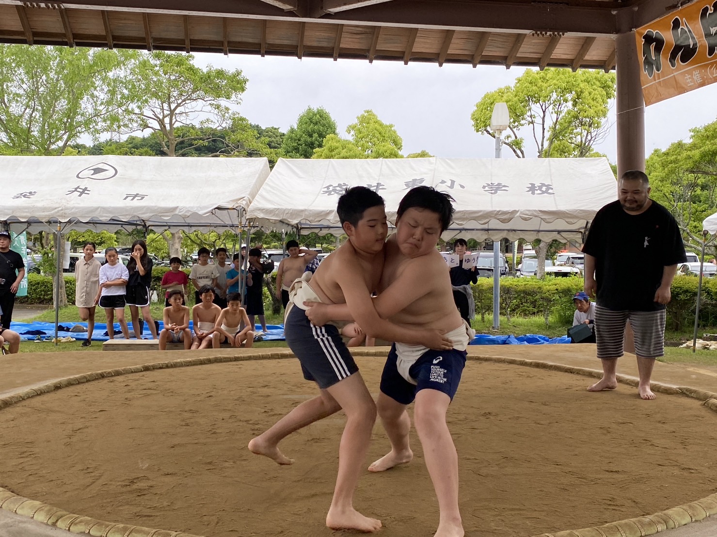 小雨が振る中でしたが、第35回わんぱく相撲袋井場所を愛野公園相撲場にて開催しました!!